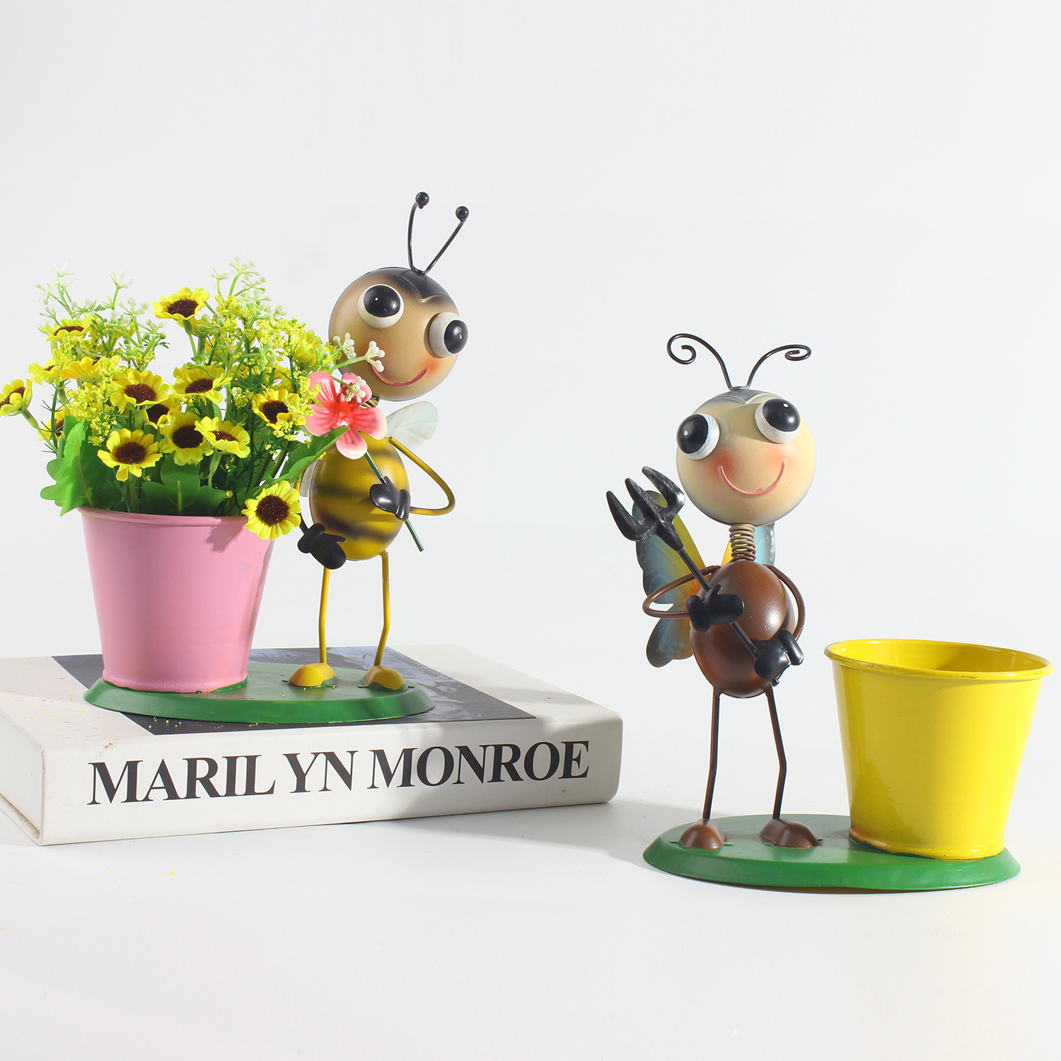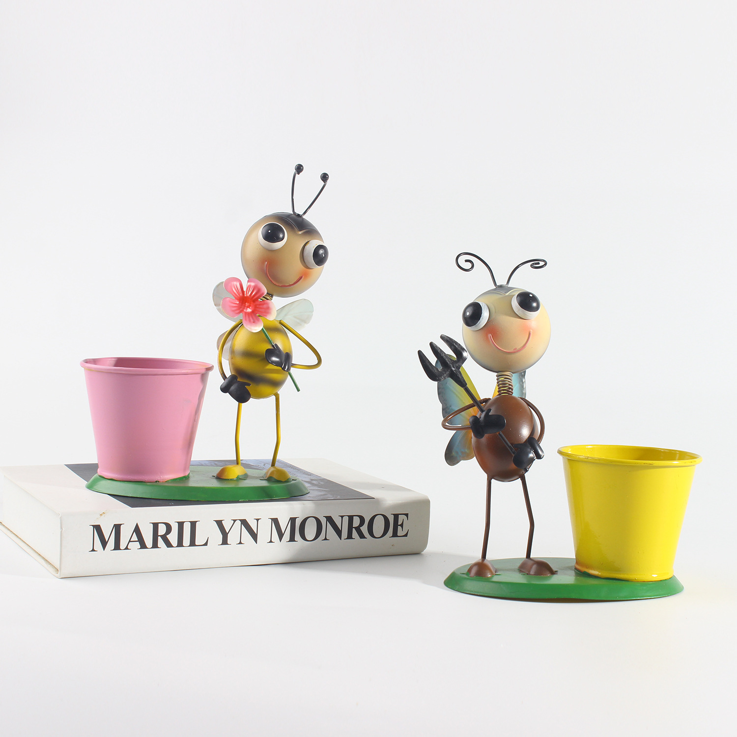 New metal flowerpot gardening succulent plant potted office home decoration bee human animal ornaments