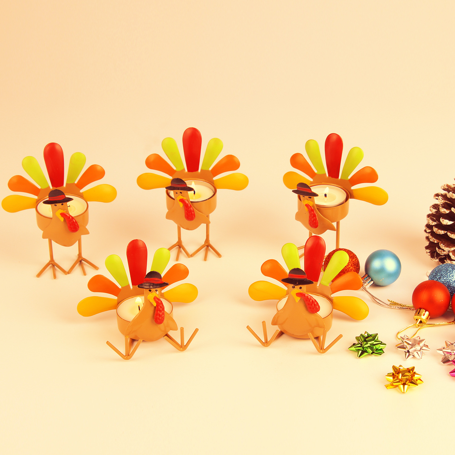 Metal Color Turkey Tea Lamp Candlestick Thanksgiving Candlestick Standing Sitting Family Dining Table Decoration